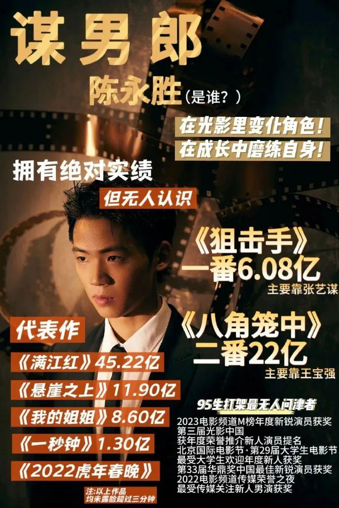 陈永胜的,出生于1998年,今年27岁,一看他履历是真不简单。虽然年纪轻轻,长相路人,却深得张艺谋和王宝强重用,演出了多部人气不错的电影。